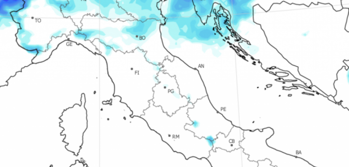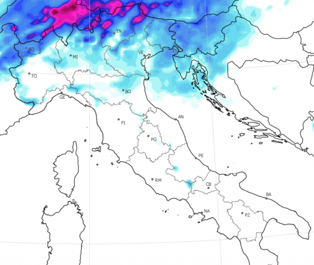 Nel fine settimana una perturbazione atlantica porterà un deciso cambiamento del tempo, con rovesci e temporali che sabato bagneranno gran parte del Nord per poi scivolare, nella giornata di domenica, sulle regioni centrali e meridionali (nella mappa le piogge previste per sabato), mentre le temperature caleranno di diversi scendendo, in molte località, anche al di sotto delle medie stagionali.