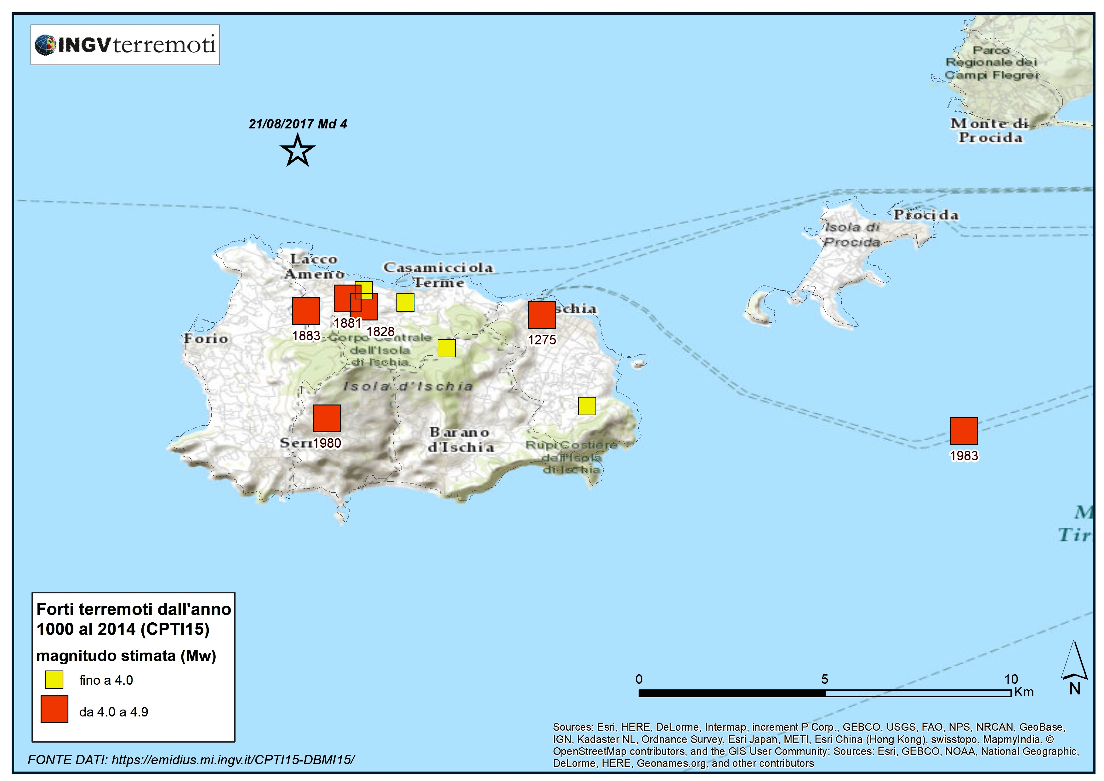 L’isola d’Ischia, la più grande delle Isole Partenopee che chiude a ovest il Golfo di Napoli, ha una sismicità storica ben conosciuta.