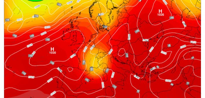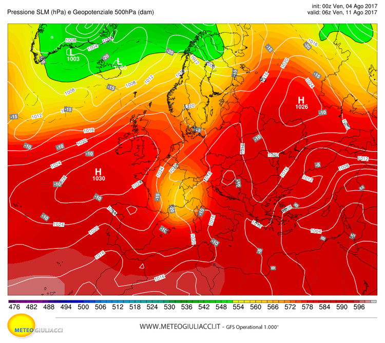 Domenica 6 agosto una quota intorno 592 dam, ovvero in calo ma ancora elevata.