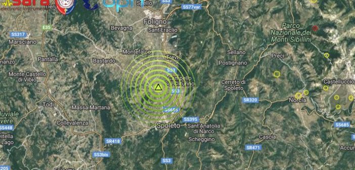 Una scossa di terremoto di magnitudo 2.7 è avvenuta alle ore 19:02:33 italiane nella zona tra Campello sul Clitunno (PG) e Castel Ritaldi (PG) in Umbria con ipocentro alla profondità di 9,3 km.