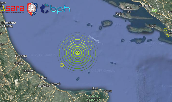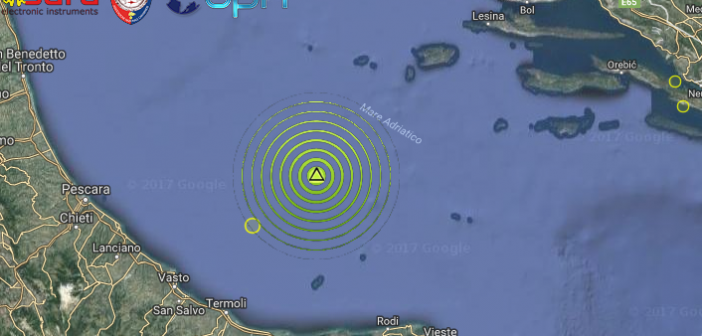 SCOSSA DI TERREMOTO DI Ml 2.9 NELLA NOTTE IN ADRIATICO, AL LARGO DELLE COSTE ABRUZZESI