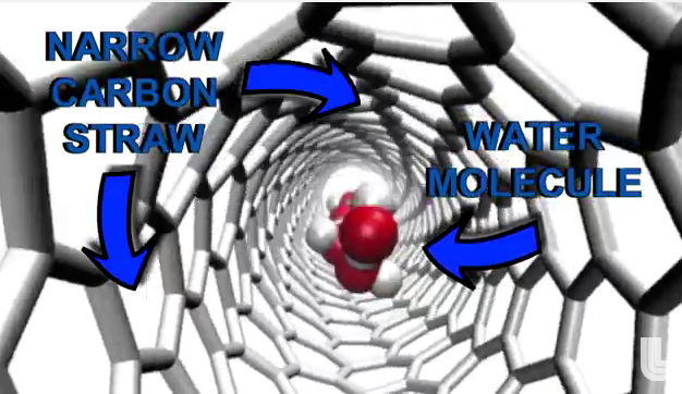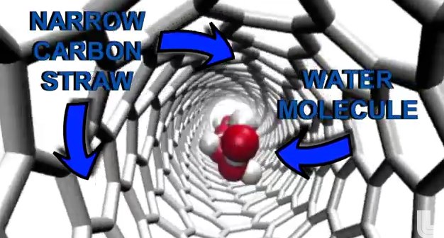“Abbiamo riscontrato che i nanotubi di carbonio con diametri inferiori a un nanometro hanno una caratteristica strutturale chiave che consente un miglioramento del trasporto. Lo stretto canale idrofobico costringe l’acqua a muoversi in una sola direzione, un fenomeno simile a quello trovato nei più efficienti trasportatori di acqua biologica” ha spiegato Ramya Tunuguntla, ricercatore del LLNL e coautore della ricerca.