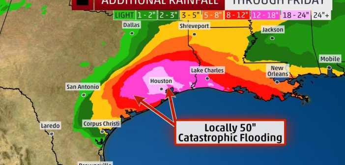 L’Uragano declassato a tempesta tropicale, stazionerà ancora per giorni sul Texas. Le autorità hanno invitato le persone intrappolate ad andare sui tetti delle loro case e ad agitare lenzuola. Si moltiplicano su Twitter e altri social gli appelli ai soccorritori