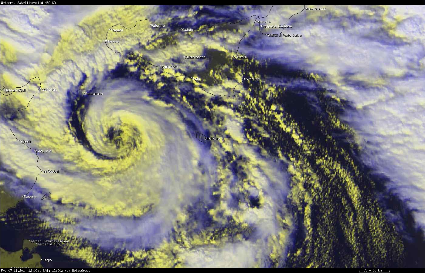 Fig.3 – Ciclone tropicale prossimo alla Sicilia il 7 novembre 2014