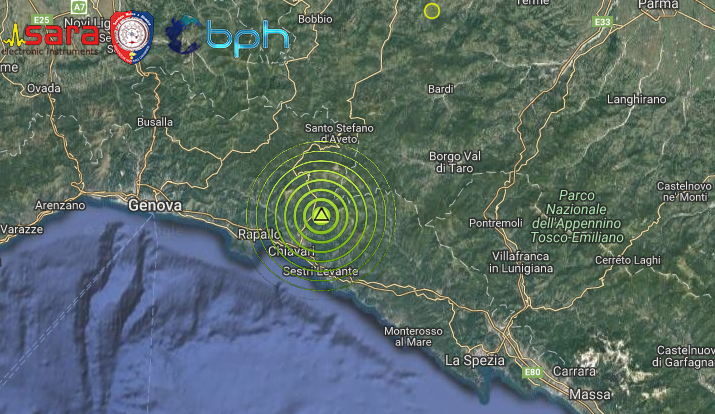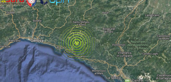 LIEVE SCOSSA DI TERREMOTO DI ML 2.2 NELL’ENTROTERRA LIGURE, NELLA ZONA DI CHIAVARI (GE)
