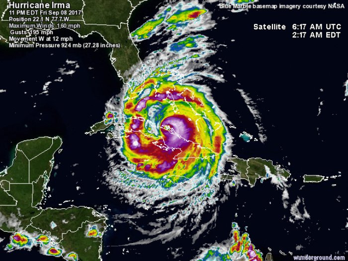 “Non ci sono ragioni ovvie perché Irma non rimanga un uragano potente nei prossimi 3 giorni, mentre si avvicina alla Florida. Irma dovrebbe mantenere la sua intensità finché non si avvicinerà alla terraferma, fluttuando tra Cat.4 e Cat.5”, commenta il metereologo Lixion Avila, dell’Nhc.