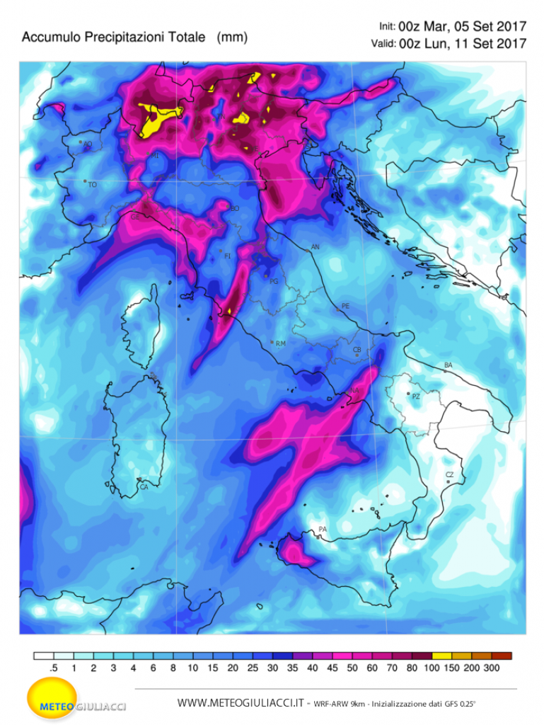 Buoni apporti su tutta la pianura friulana e parte di quella veneta, tra Liguria ed alta Toscana, fra Toscana, Umbria e Lazio ma anche al Sud con accumuli importanti su Campania e Sicilia occidentale. Vedremo nei prossimi giorni se questa tendenza sarà confermata.