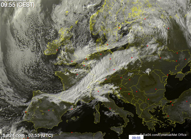 Fig.2 – Area di bassa pressione allungata verso il Mediterraneo occidentale nella giornata di sabato 16 settembre