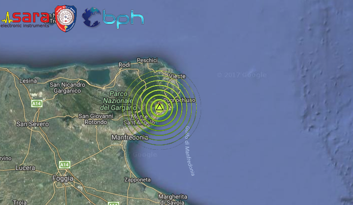 SCOSSA DI TERREMOTO DI Ml 2.7 NELLA ZONA DEL GARGANO IN PUGLIA