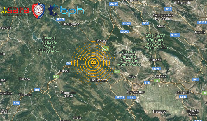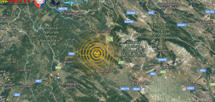 Un terremoto di magnitudo (Ml) 3.9 è avvenuto alle ore 21:58:09 ed è stato localizzato nella zona del Monte Velino, al confine tra Lazio e Abruzzo, con ipocentro alla profondità di 8,3  km.