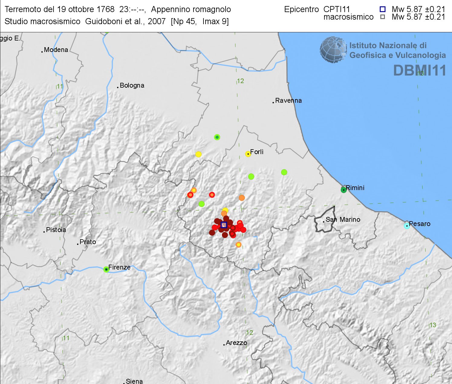 | 1768 10 19 | Appennino romagnolo | 9 | 5.9 |