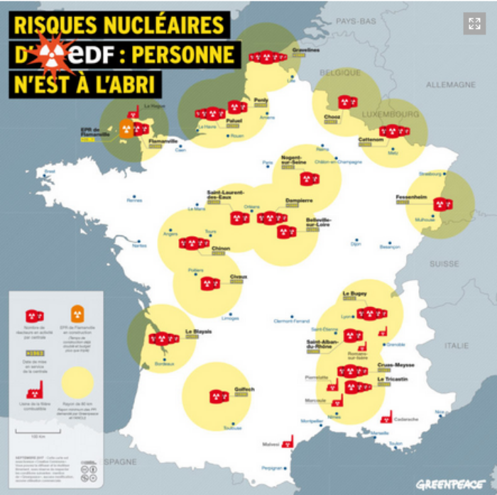 Gli esperti sono particolarmente preoccupati per alcune installazioni delle centrali francesi: le piscine di stoccaggio dei combustibili nucleari esausti. «Mentre possono contenere il volume di materiale radioattivo più importante all’interno delle centrali – spiegano a Greenpeace – queste piscine sono protette molto male. Non aspettiamo a braccia incrociate che succeda il peggio: parliamone ed agiamo».