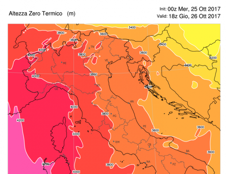 Giovedì quota dello zero termico fin sui 4200 metri, anche se l’aumento sarà temporaneo
