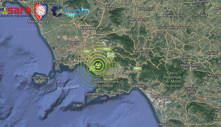 Un terremoto di magnitudo (Md) 2.5 è avvenuto alle ore 05:17:41 ed è stato localizzato nella zona del Vesuvio in Campania, con ipocentro alla profondità di 2 km. L’evento è stato seguito, pochi istanti dopo, da una replica di Md 1.5 alla profondità di circa 10 km