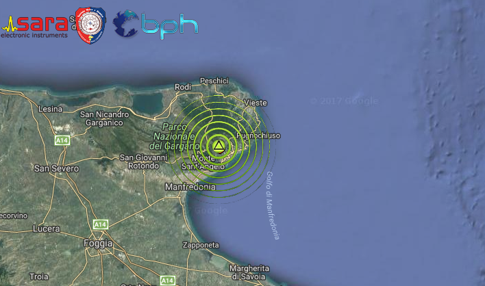 SCOSSA DI TERREMOTO DI Ml 2.6 NELLA NOTTE NELLA ZONA DEL GARGANO IN PUGLIA