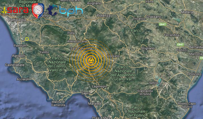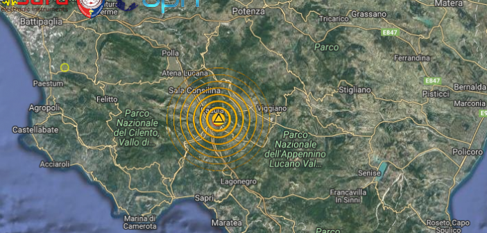 Una scossa di terremoto di magnitudo 3.8 è avvenuta alle ore 00:38:35 italiane in provincia di Salerno, al confine tra Campania e Basilicata, con ipocentro alla profondità di 10,9 km.