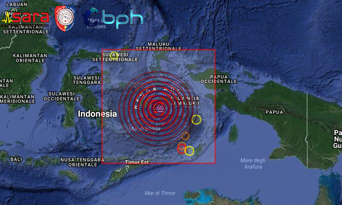SERIE DI FORTI SCOSSE DI TERREMOTO TRA Mw 6.3 e Mw 5.7 NEL MAR DI BANDA IN INDONESIA