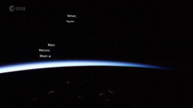 La Luna che sorge alle spalle della Terra, accompagnata dalle sagome di Mercurio, Marte e Venere, il tutto in time lapse e ripreso dalla Cupola della Stazione spaziale internazionale.