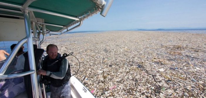 Qualche giorno fa la fotografa navigava al largo di Roatàn, un’isola tropicale del Mar dei Caraibi al largo delle coste dell’Honduras, quando si è trovata ad assistere a uno spettacolo spaventoso: uscita per una gita in barca si è imbattuta in una vera e propra isola di plastica. Bottiglie, buste, contenitori. Chilometri di rifiuti galleggianti – trascinati in mare aperto durante la stagione delle piogge e raccolti dalle correnti in enormi agglomerati – si estendevano davanti ai suoi occhi.