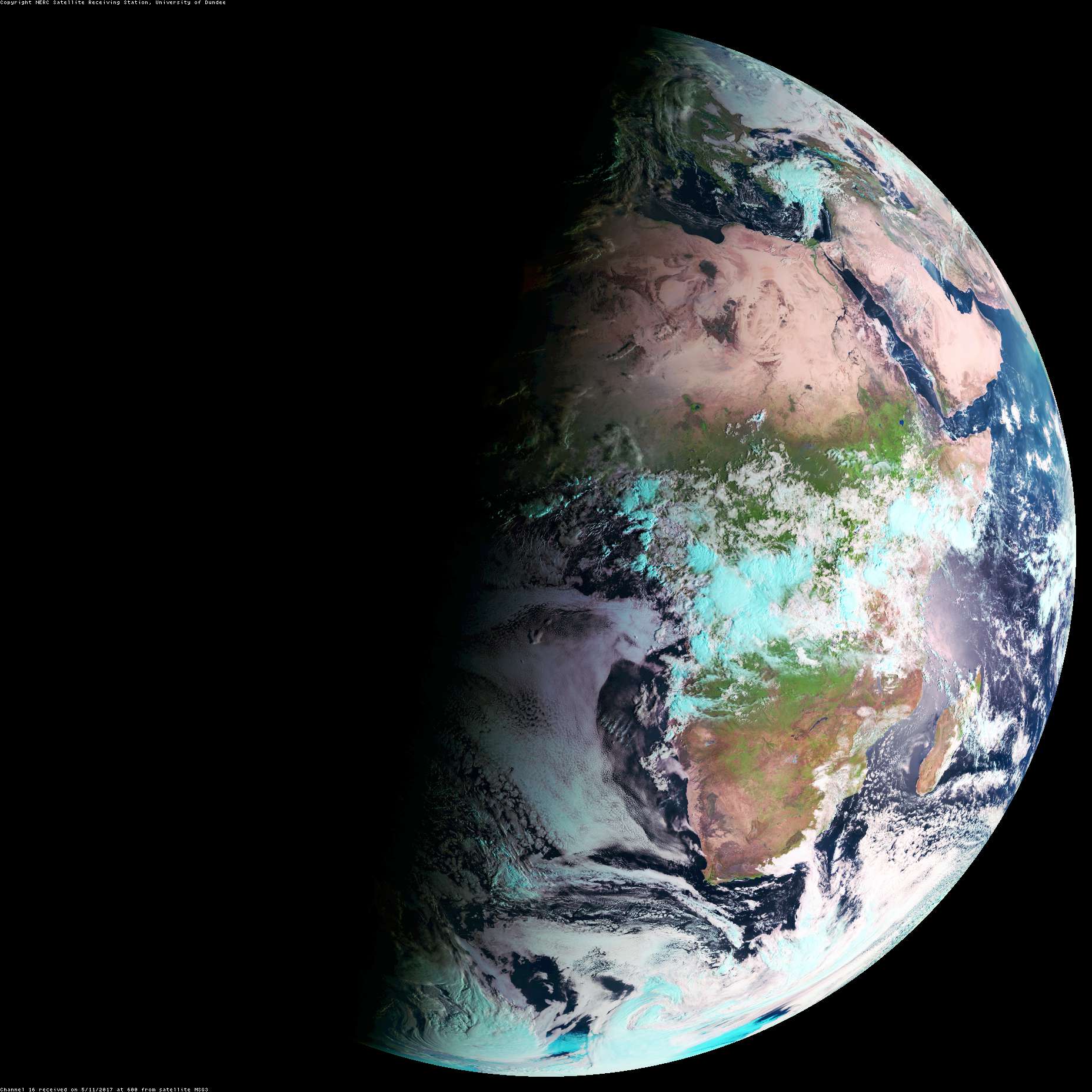 Le prime due immagini, a colori, vengono dal satellite Meteosat e mostrano, con inequivocabile bellezza, la linea dell’alba che attraversa l’Europa, essendo gli scatti delle 06.00 UTC (le 07.00 in Italia) facendo apprezzare, nel suo stato obliquo, anche l’ìnclinazione dell’asse terrestre e come i raggi del sole colpiscono il nostro pianeta. La prima immagine è sulla verticale del meridiano di Greenwich, mentre la seconda è più spostata verso est, sopra l’Egitto per avere un punto di riferimento della direttrice