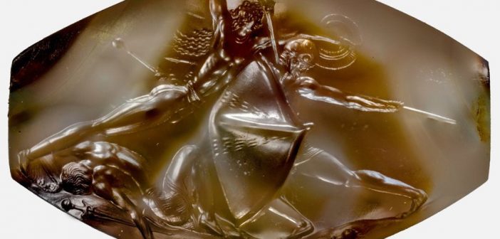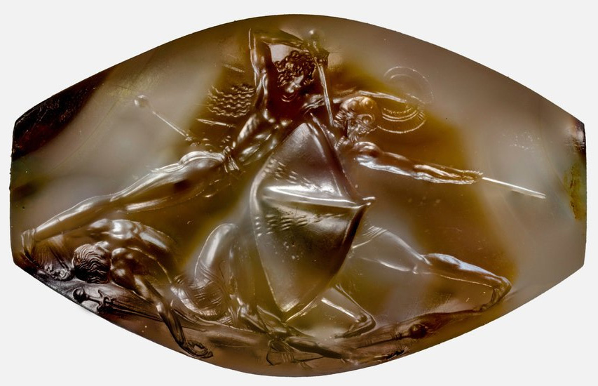 Un piccolo capolavoro. Ma poi, ripulita la sporcizia, l’oggetto misterioso si è rivelato una pietra preziosa, incisa con precisione mirabile: un frammento di agata decorato con una scena di combattimento tra tre guerrieri. Uno sta per infilzare con la spada l’avversario, che si copre invano con lo scudo. Un terzo giace a terra, senza vita, in una rappresentazione che ricorda un momento drammatico dell’Iliade, o dell’Odissea, di Omero.