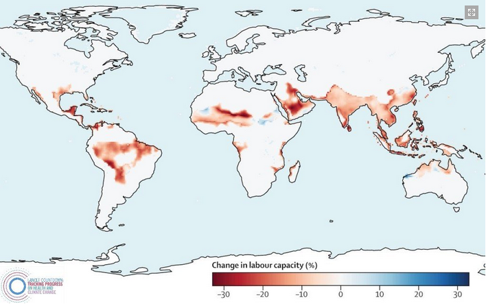 Il frapporto evidenzia che «E’ chiaro che le canicole sono sempre più frequenti e sempre più intense: tra il 2000 e il 2016, 125 milioni di adulti vulnerabili in più sono stati esposti a delle canicole>. L’aumento delle temperature all’aperto ha effetti negativi sulla produttività del lavoro: «Le popolazioni esposte tra il 2000 e il 2016 presentano quindi una riduzione globale della loro produttività del 5,3%».