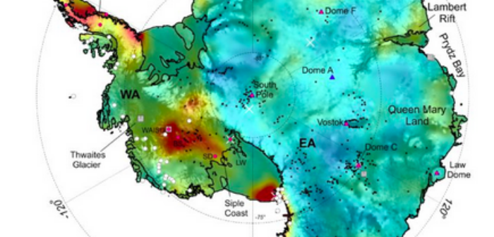 La calotta glaciale antartica è il più grande serbatoio d’acqua dolce del nostro pianeta: ne custodisce circa il 70%, anche se questo serbatoio si sta assottigliando. In Antartide c’è meno ghiaccio, e il livello dei mari in tutto il mondo si sta alzando. Per capire meglio tutti gli aspetti del fenomeno in corso, un team internazionale di scienziati guidati dal British antarctic survey (Bas) ha prodotto una nuova e più precisa  mappa – pubblicata sulla rivista scientifica Geophysical research letters – che mostra come il calore geotermico influenza le condizioni della calotta polare.