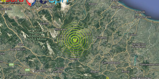 Una scossa di terremoto di magnitudo 2.9 è avvenuta alle ore 22:30:43 italiane nella zona della Val di Sangro, al confine tra Molise e Abruzzo, con ipocentro alla profondità di 10,3 km.