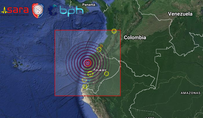 Secondo il Servizio Geologico degli Stati Uniti USGS il terremoto e’ avvenuto 19 km a NE della località di Bahia de Caraquez, in una zona popolosa e, data la superficialità dell’evento, potrebbero esserci danni