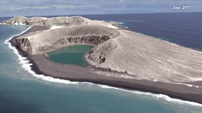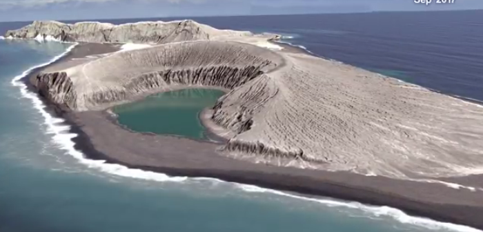 Nel corso dell’ultimo mese del 2014, un vulcano sottomarino nel Regno di Tonga nel Sud Pacifico ha eruttato un violento flusso di vapore, cenere e roccia nell’aria. Quando finalmente la cenere si è stabilizzata nel gennaio 2015 è apparsa, tra due isole già esistenti e disabitate, una nuova conformazione che copre circa 200 ettari e si estende fino a 120 metri sopra l’oceano.