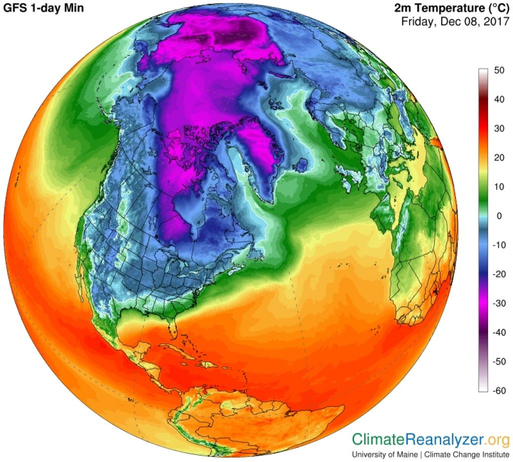 L’assenza continua di luce solare rende quasi impercettibile l’escursione termica tra le ore notturne e quelle diurne, che durante il periodo di buio perenne mediamente non supera mai i 4-5 °C.