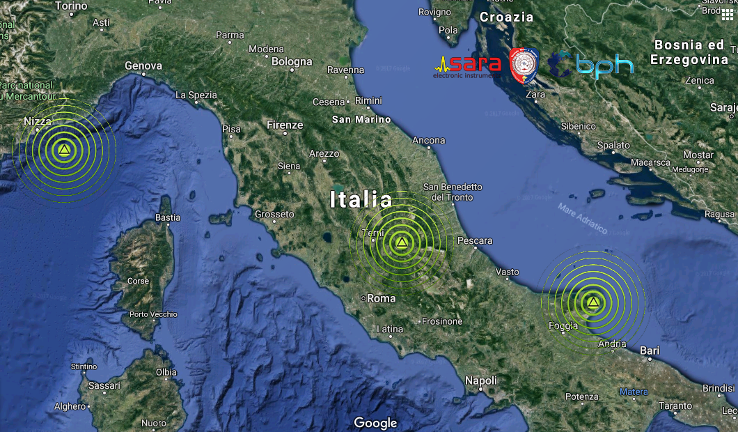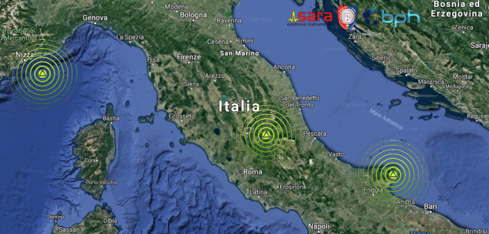 TRE SCOSSE DI TERREMOTO DI Ml 2.3 IN MENO DI UN’ORA NEL GARGANO, REATINO E DI FRONTE ALLA COSTA SANREMESE
