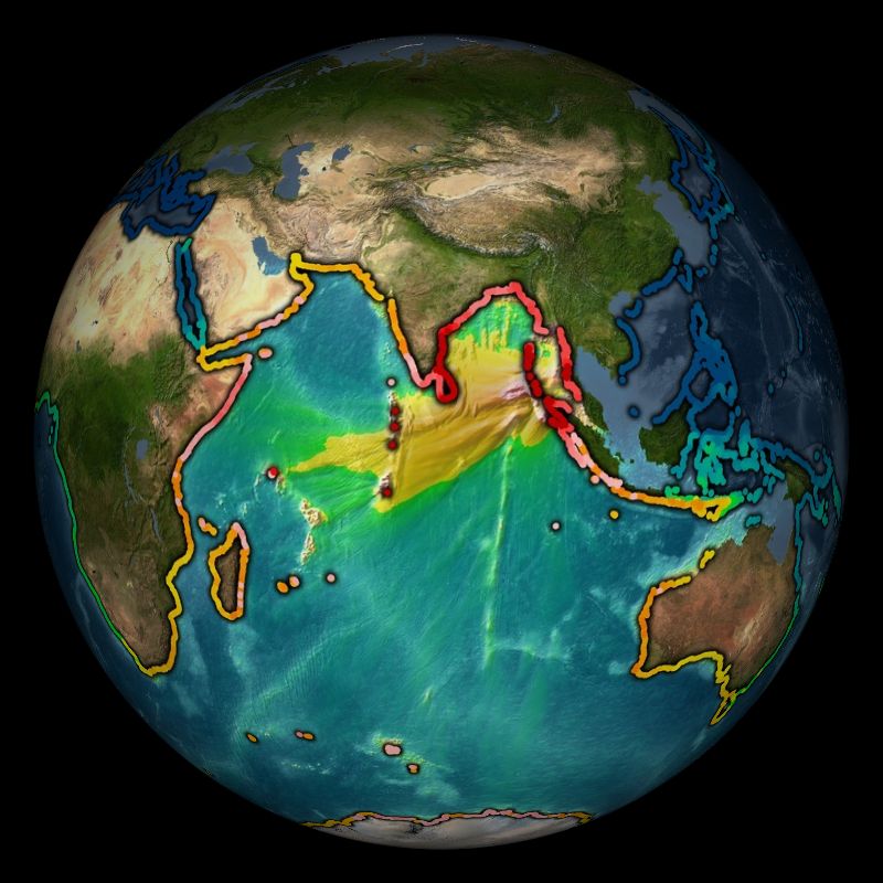 Questa animazione mostra perché questa rottura sud-nord è importante per comprendere il comportamento di questo tsunami e perché una simile rottura “progressiva” debba essere presa in considerazione per le future previsioni sullo tsunami. Se il terremoto avesse spostato la faglia per tutta la sua lunghezza, avrebbe inviato le più grandi ondate di tsunami perpendicolari alla faglia e così sarebbero passati a sud dello Sri Lanka. Il moto del terremoto, tuttavia, è iniziato nel sud e si è spostato verso nord lungo la faglia, così lo tsunami ha iniziato a irradiarsi da vicino a Sumatra prima che potesse essere generato vicino a Myanmar, causando così le più grandi ondate di tsunami in una direzione diversa tale da colpire lo Sri Lanka e la Somalia direttamente, coerentemente con le onde dello tsunami effettivamente osservate in quei paesi.
