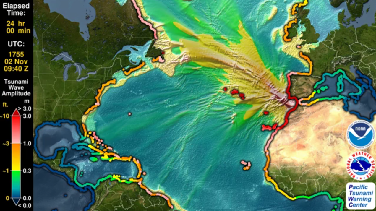 IL VIDEO DELL’ANIMAZIONE DELLO TSUNAMI GENERATO DAL TERRIFICANTE TERREMOTO DI Mw 8.5 DELL’1 NOVEMBRE 1755 AL LARGO DEL PORTOGALLO