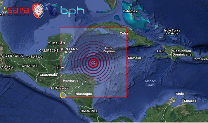 FORTISSIMA SCOSSA DI TERREMOTO DI Mw 7.6 AL LARGO DELLE COSTE DELL’HONDURAS NEL MAR DEI CARAIBI