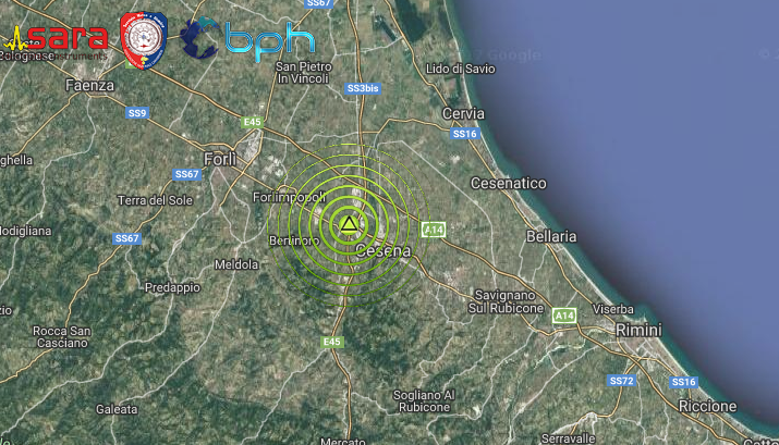 Epicentro in prossimità della città di Cesena, evento lievemente avvertito dalla popolazione in zona epicentrale
