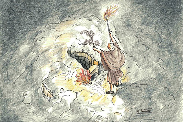 Ricostruzione del rito sacrificale avvenuto nel santuario nuragico in località La Purissima, vicino ad Alghero. Illustrazione di Natalina Lutzu