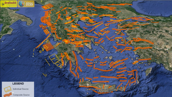 Un catalogo delle sorgenti sismogenetiche greche è consultabile qui: The Greek Database of Seismogenic Sources, in collaborazione con DISS dell’INGV