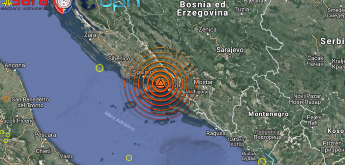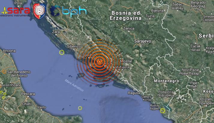 Epicentro 38 km a sud di Spalato, in prossimità delle coste croate. Non dovrebbero esserci danni.