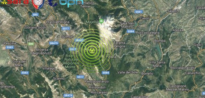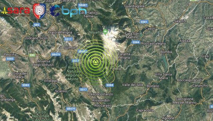 Una scossa di terremoto di magnitudo 2.7 è avvenuta alle ore 14:29:40 italiane nella zona della Maiella in Abruzzo, con ipocentro alla profondità di 10,2 km.