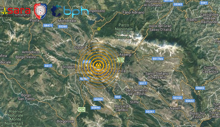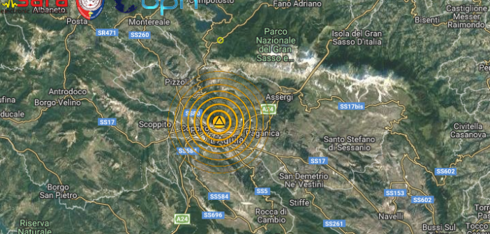 SCOSSA DI TERREMOTO DI Ml 3.9 NELLA NOTTE NELLA ZONA DI L’AQUILA IN ABRUZZO