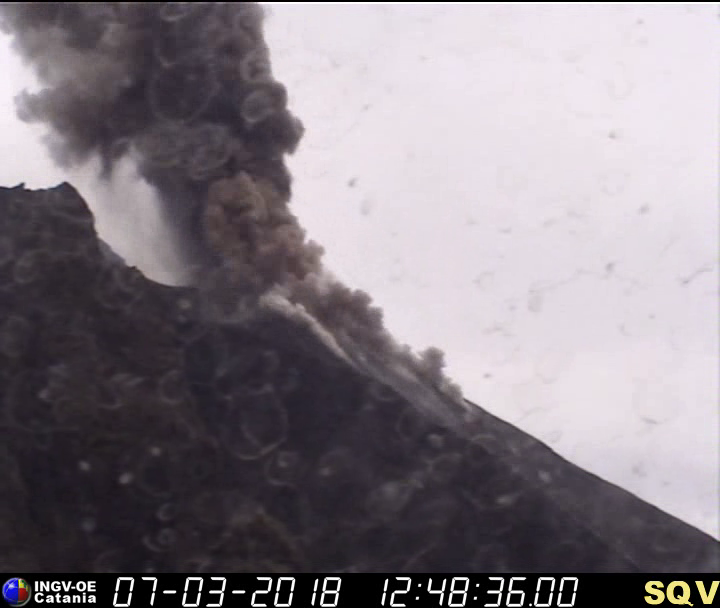 Il giorno 7 marzo 2018 si è verificata una violenta sequenza esplosiva da una delle bocche poste nell’area settentrionale della terrazza craterica dello Stromboli