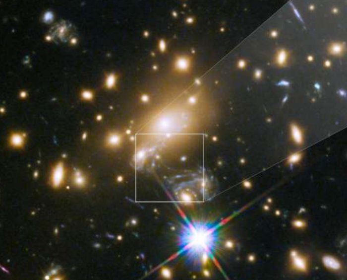 Grazie all’effetto lente d’ingrandimento fornito da un ammasso di galassie antistante, il telescopio spaziale Hubble è riuscito a fotografare la più distante singola stella mai scoperta. Nel team internazionale anche tre italiani