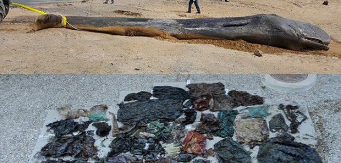 Morto capodoglio ucciso da 30 kg di plastica nello stomaco