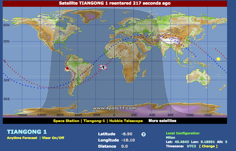 Ore 02.16: la Stazione spaziale cinese è rientrata e si è disintegrata nell’Oceano Pacifico!