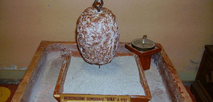 “Sospeso alla trave di una stanza…un mobilissimo pendolo nella cui inferiore estremità sia inserito un globo…di nobile peso, e in questo sia impiantato uno stilo di circa un pollice e mezzo di lunghezza, colla pinta verso il pavimento; si riempia di finissima rena…una cassetta di legno e questa si posi sull’acqua contenuta in un vaso di molta ampiezza, cosicché galleggi e la punta dello stilo sia un tantino intinta nell’arena…Dalli solchi che lo stilo vi scaverà, si potrà conoscere la qualità e l’impeto delle scosse. Se il terremoto sarà stato regolare, o di ondeggiamento, rettilinei saranno li solchi, se tremulo ed irregolare saranno tortuosi; se sarà stato vorticoso…si conoscerà ciò dalla profondità a cui lo stilo sarà penetrato entro la materia molle…”