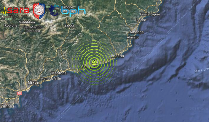 SCOSSA DI TERREMOTO DI Ml 2.4 IN PROVINCIA DI IMPERIA IN LIGURIA
