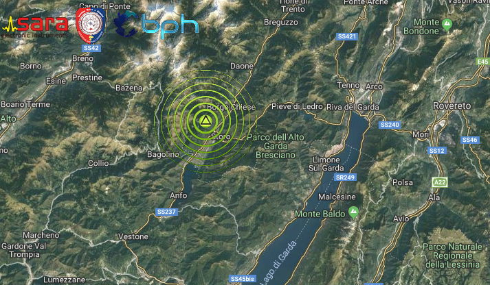 Una scossa di terremoto di magnitudo 2.8 è avvenuta alle ore  07:38:35 italiane nella zona della Valle del CHiese, in Trentino Alto Adige con ipocentro alla profondità di 8,1km.