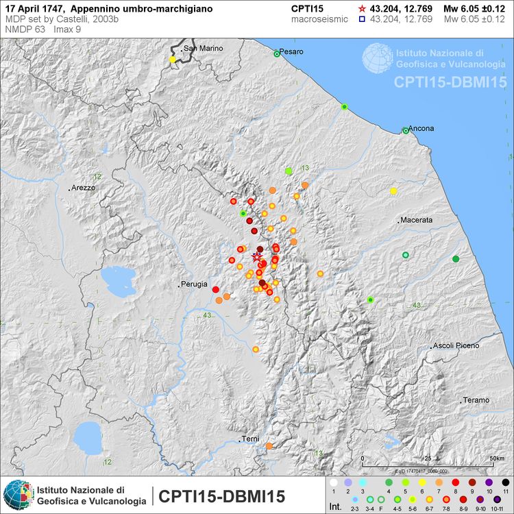 Quello del 17 aprile 1747 potrebbe essere il principale in una sequenza di eventi verificatisi tra il 26 gennaio e il 20 dicembre 1747 in un vasto territorio compreso tra Nocera Umbra e Senigallia