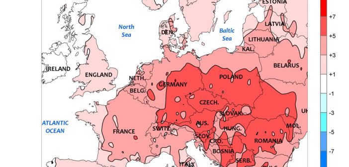 2,8 gradi in più rispetto a media, -39% per le piogge